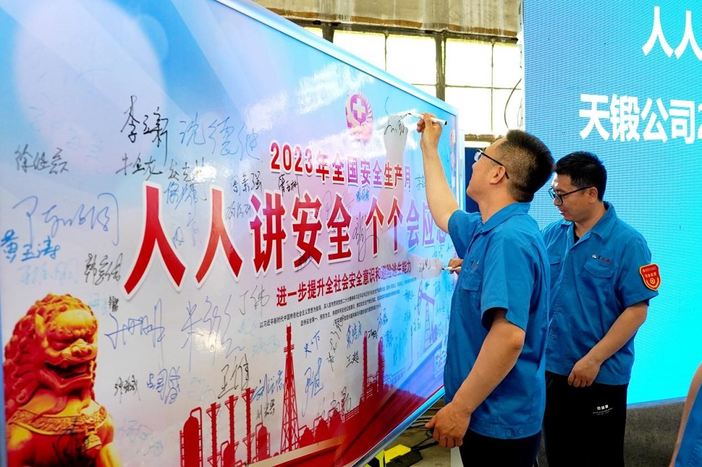 6月6日上午,天鍛公司在機加工車間舉行2023年“安全生產(chǎn)月”活動啟動大會。副總經(jīng)理張敬波主持會議,宣讀了天鍛公司2023年“安全生產(chǎn)月”活動總體實施方案和重大事故專項排查整治行動方案??偨?jīng)理劉林志宣讀了《天鍛公司安全生產(chǎn)七條剛性規(guī)定》,并代表公司與天津東方泰瑞科技有限公司簽署了安全生產(chǎn)咨詢服務合同。