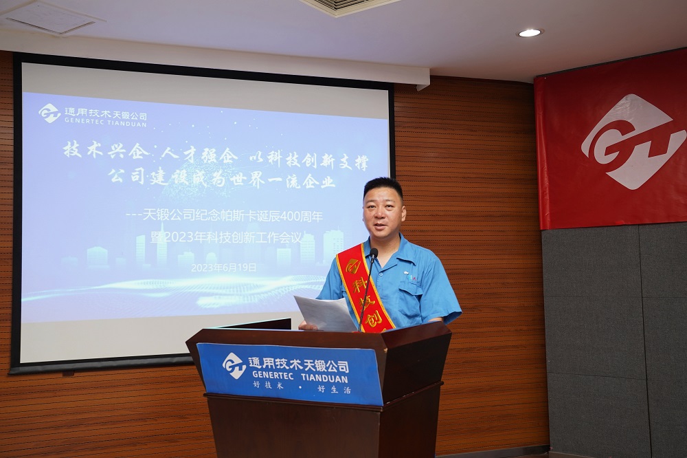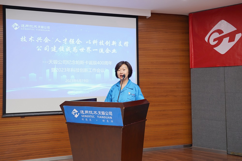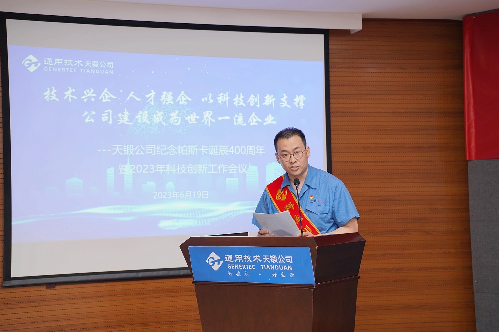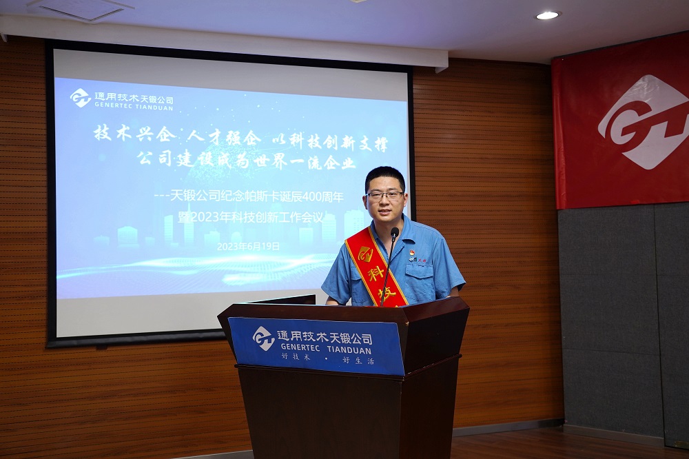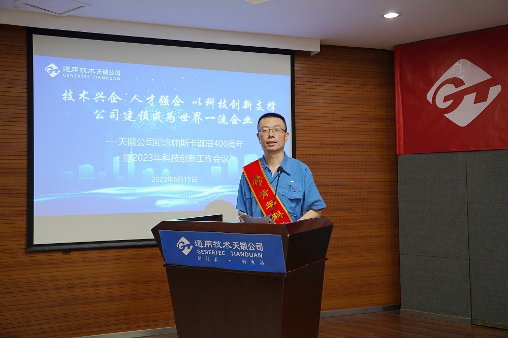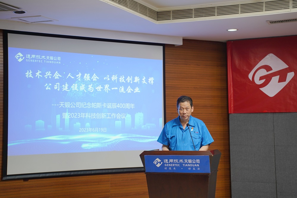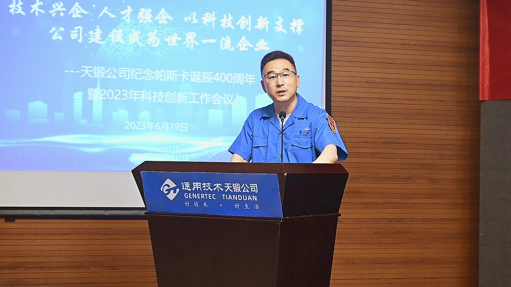 2023年6月19日,時逢法國科學家布萊士·帕斯卡誕辰400周年,天鍛公司隆重召開紀念帕斯卡誕辰400周年暨2023年科技創(chuàng)新工作會議,會議主題是“技術興企,人才強企,以科技創(chuàng)新支撐公司建設成為世界一流企業(yè)”。公司領導、有關專家、科技人員代表、各單位和基層黨組織負責人共計近150人參會。