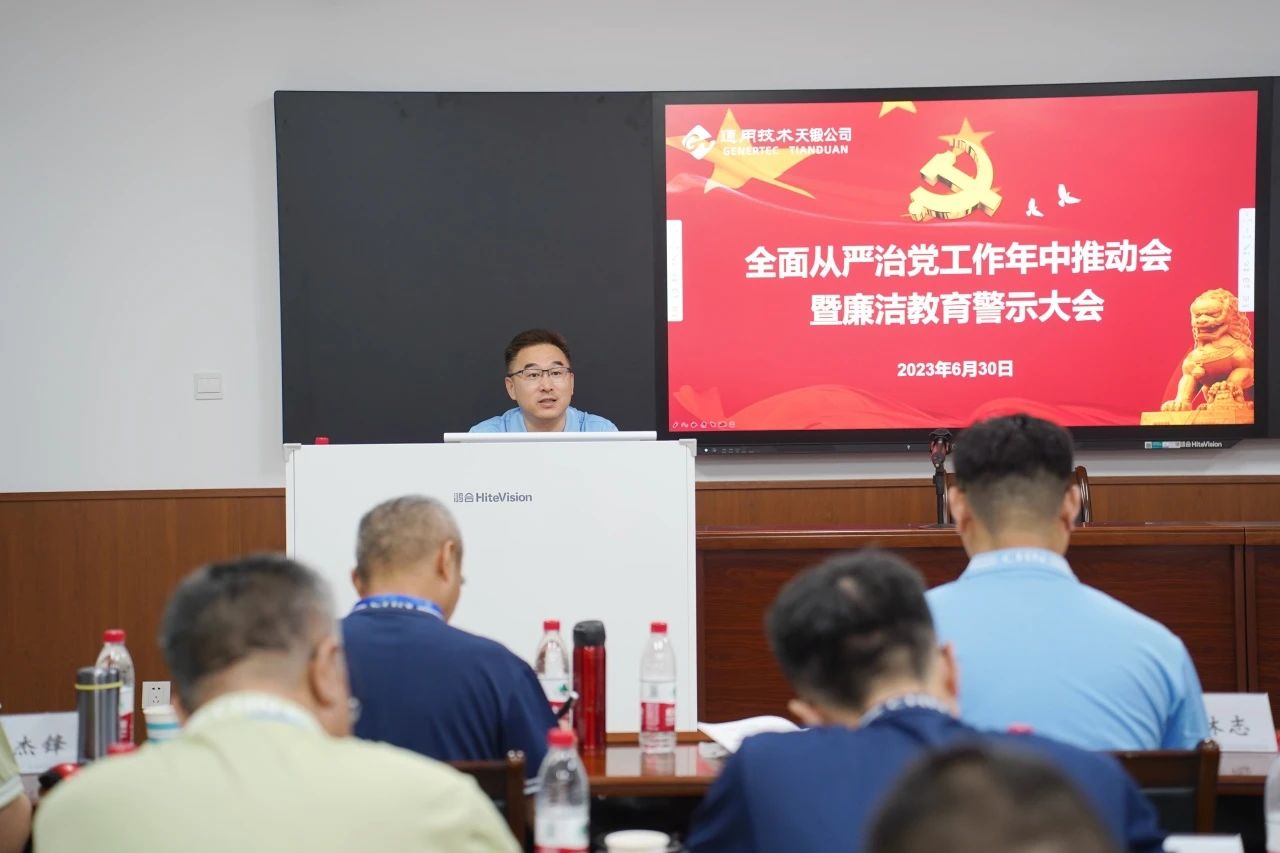 在專題黨課之后,紀(jì)委書記蘇杰鋒主持召開了公司全面從嚴(yán)治黨工作年中推動會暨廉潔教育警示大會。會上,黨委副書記盧東領(lǐng)學(xué)了從嚴(yán)治黨有關(guān)文件材料,大家集體觀看了警示教育專題片。劉國福代表公司黨委與領(lǐng)導(dǎo)班子成員、各單位負(fù)責(zé)人、基層黨組織負(fù)責(zé)人進(jìn)行了集體談話,強調(diào)公司要堅定不移推進(jìn)全面從嚴(yán)治黨,為創(chuàng)建世界一流企業(yè)營造風(fēng)清氣正的干事創(chuàng)業(yè)環(huán)境,要求各單位、各基層黨組織負(fù)責(zé)人發(fā)揮示范引領(lǐng)作用,做好本單位管黨治黨工作,做到清靜、干凈,知敬畏、有境界,不去想、不去做得不償失、悔之晚矣的事。
