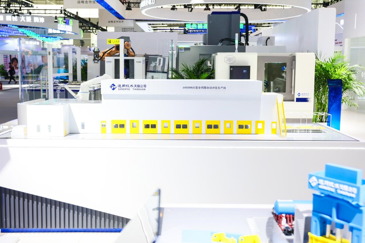 天鍛伺服多工位高速機(jī)械壓力機(jī)采用對(duì)稱多連桿增力結(jié)構(gòu),這種結(jié)構(gòu)大大降低了裝機(jī)功率,達(dá)到節(jié)能效果。目前天鍛為家電行業(yè)提供的全伺服多工位高速壓力機(jī),標(biāo)配機(jī)型為1000噸和1600噸兩種,由1臺(tái)或2臺(tái)甚至3臺(tái)多工位伺服壓力機(jī)任意匹配的方式來組建生產(chǎn)線,能夠完成家電行業(yè)中任意一種工件的復(fù)雜沖壓成型工藝。