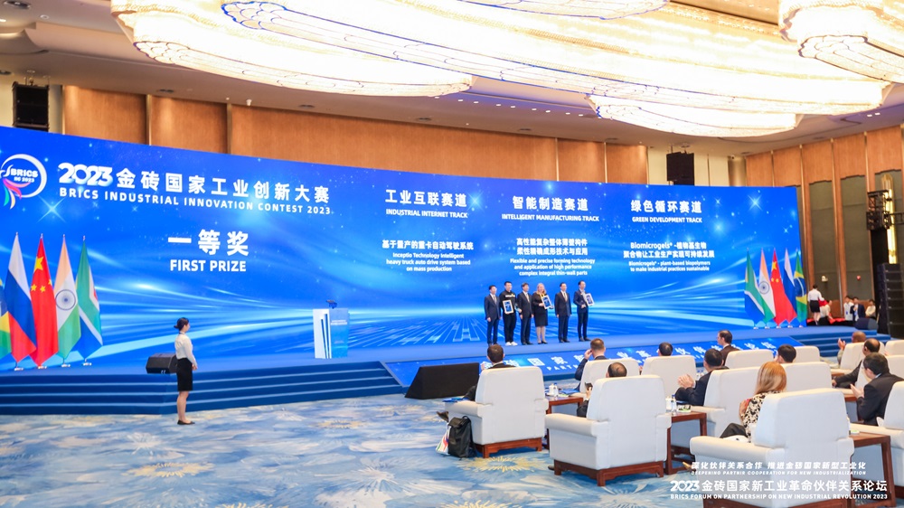 為深入貫徹習(xí)近平總書記在金磚國家領(lǐng)導(dǎo)人第十四次會晤上的重要講話精神,進(jìn)一步落實(shí)伙伴關(guān)系工作計劃,積極促進(jìn)新工業(yè)革命領(lǐng)域人才培養(yǎng)和能力建設(shè),工業(yè)和信息化部與福建省人民政府于7月份正式啟動2023 金磚國家工業(yè)創(chuàng)新大賽。大賽以“深化伙伴關(guān)系合作 推進(jìn)金磚國家新型工業(yè)化”為主題,設(shè)置了工業(yè)互聯(lián)、智能制造、綠色循環(huán)三個比賽領(lǐng)域。大賽共吸引了海內(nèi)外1346個項(xiàng)目參賽,其中,“智能制造”領(lǐng)域?yàn)?25個。經(jīng)過境內(nèi)外專家評審和組委會審議,每個比賽領(lǐng)域最終遴選出一等獎1名、二等獎2名、三等獎3名。