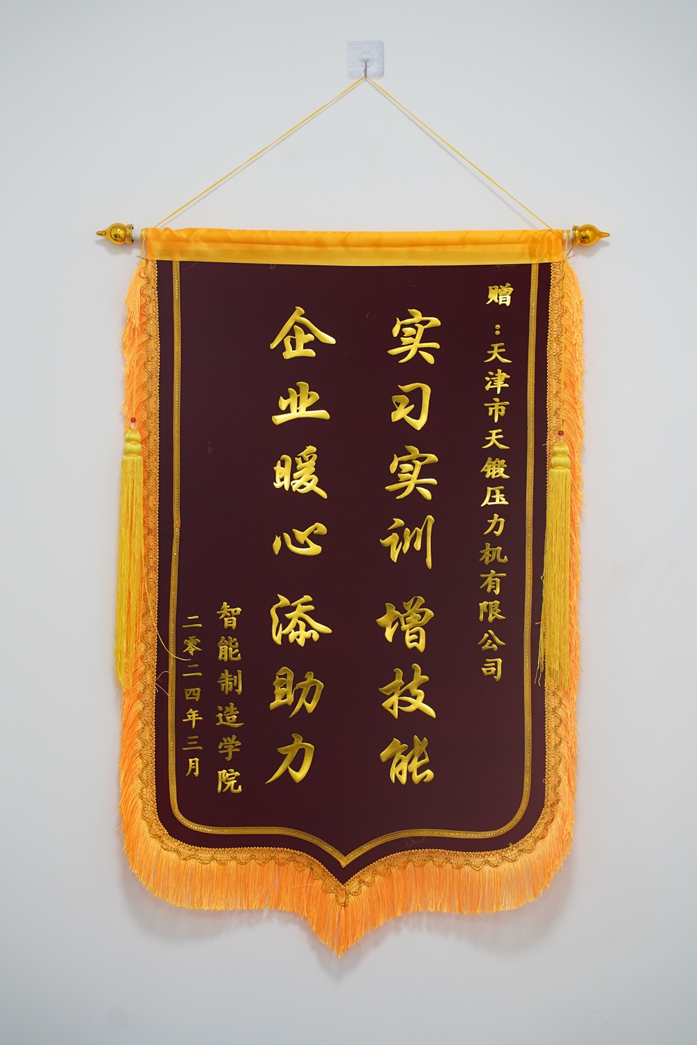 通過(guò)參觀和座談交流,學(xué)生們更加深入地了解公司,同時(shí)也為進(jìn)一步加強(qiáng)校企合作提供了載體。為感謝公司在校企合作中提供的支持和作出的努力,智能制造學(xué)院為公司贈(zèng)送了錦旗,期待雙方采取更大力度推動(dòng)深層次交流與合作。