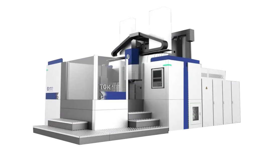 該產(chǎn)品適用于新能源汽車等行業(yè)復(fù)雜異形零件的加工,是通用技術(shù)集團(tuán)自主研發(fā)的高性能臥式五軸加工中心。產(chǎn)品直線軸快移速度達(dá)100m/min、加速度達(dá)1g,旋轉(zhuǎn)軸由力矩電機(jī)直驅(qū),轉(zhuǎn)速超40r/min,整機(jī)動(dòng)態(tài)性能極佳。高速、高精、高剛的特性,豐富的配置,可應(yīng)用于新能源汽車鋁合金副車架加工等領(lǐng)域,將在新能源汽車領(lǐng)域發(fā)揮卓越的生產(chǎn)性能。