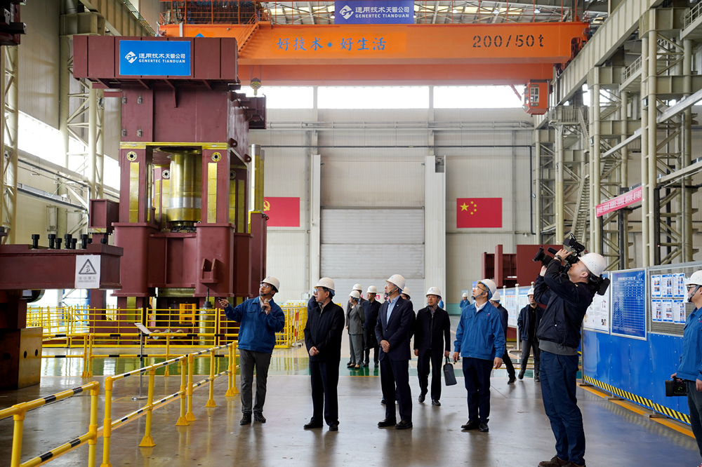 集團(tuán)領(lǐng)導(dǎo)陪同天津市人大常委會(huì)領(lǐng)導(dǎo)參觀調(diào)研了公司國(guó)際車間。公司董事長(zhǎng)、黨委書記劉國(guó)福報(bào)告了集團(tuán)機(jī)床產(chǎn)業(yè)的整體情況和天鍛公司的基本情況,公司副總經(jīng)理王世明介紹了國(guó)際車間正在安裝調(diào)試的主要成品的技術(shù)特點(diǎn)和銷售情況。