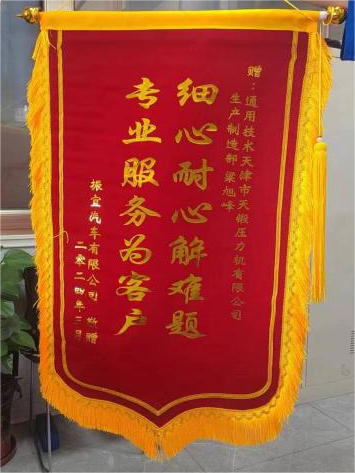 同月,公司接到振宜汽車有限公司提出的緊急設備維修需求。生產(chǎn)制造部專業(yè)技術人員梁旭峰第一時間前往現(xiàn)場。鑒于客戶生產(chǎn)任務繁重,設備停機需降至最低,梁旭峰預先深入分析,精準判斷設備故障,優(yōu)化排查流程,迅速鎖定了故障源頭。經(jīng)與客戶協(xié)商,最終確定了3天的最大停機時限。面對龐大工作量,梁旭峰爭分奪秒進行搶修,吃飯、休息都在設備現(xiàn)場,提前1天完成設備維修并且順利恢復生產(chǎn),大大降低了客戶的損失。用戶將“細心耐心解難題、專業(yè)服務為客戶”的錦旗贈與梁旭峰,感謝其周到、細致、貼心的服務。