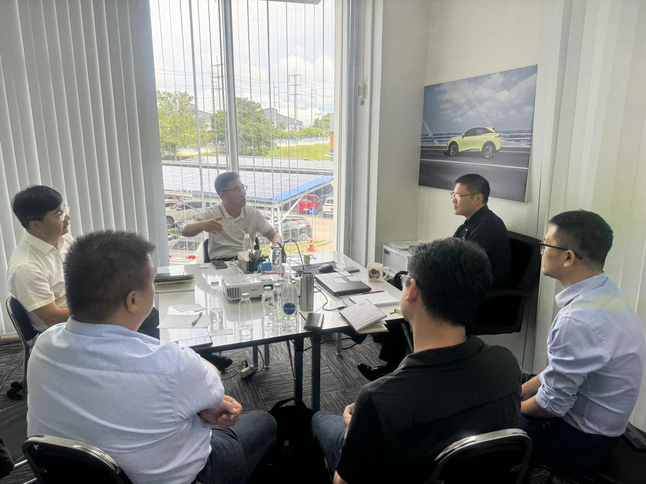 公司領(lǐng)導(dǎo)一行在泰國調(diào)研期間,先后赴客戶企業(yè)宏鑫科技、長安汽車的泰國工廠參觀交流,了解客戶企業(yè)泰國工廠建設(shè)進度,溝通對公司有關(guān)設(shè)備的使用情況和后續(xù)需求計劃,交流有關(guān)工作安排,探討進一步深入合作的思路與安排。
