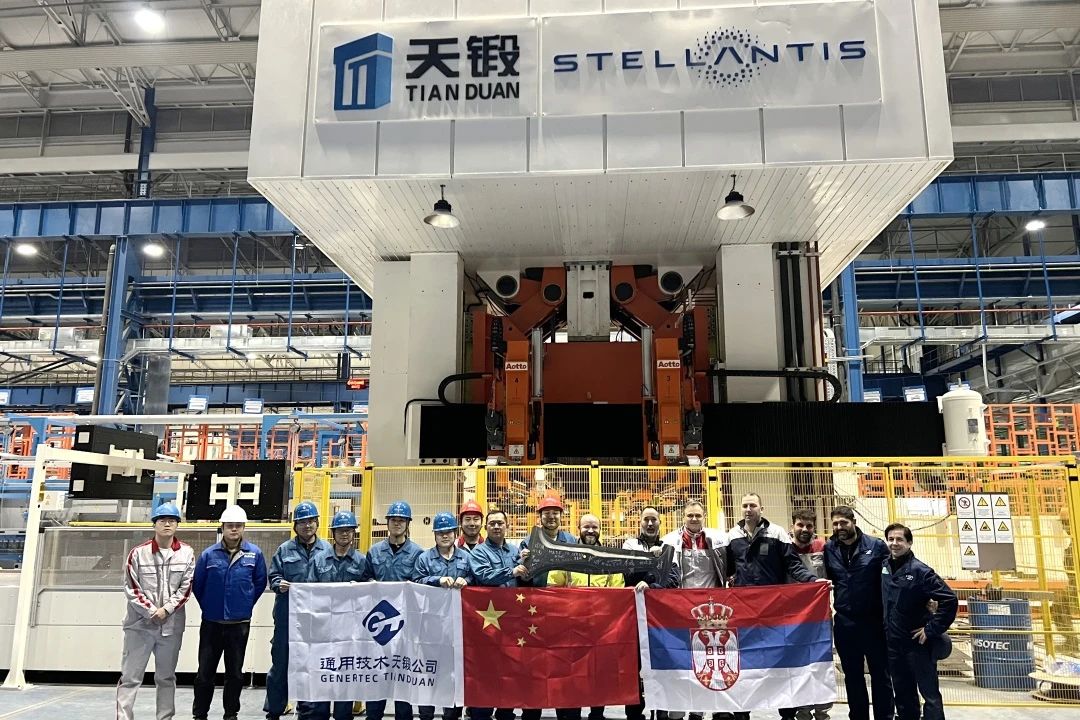 當(dāng)?shù)貢r(shí)間12月2日,天鍛公司為全球第四大汽車制造商Stellantis集團(tuán)提供的第6條12000kN復(fù)合驅(qū)動(dòng)熱成形壓力機(jī)自動(dòng)化生產(chǎn)線實(shí)現(xiàn)了首件試制成功,現(xiàn)場(chǎng)安裝調(diào)試工作僅僅用時(shí)26天!刷新了公司海外訂單的交付記錄,展示了公司在高端裝備制造領(lǐng)域的技術(shù)能力和管理能力,凸顯了中國(guó)制造業(yè)在國(guó)際舞臺(tái)上的強(qiáng)大競(jìng)爭(zhēng)力。