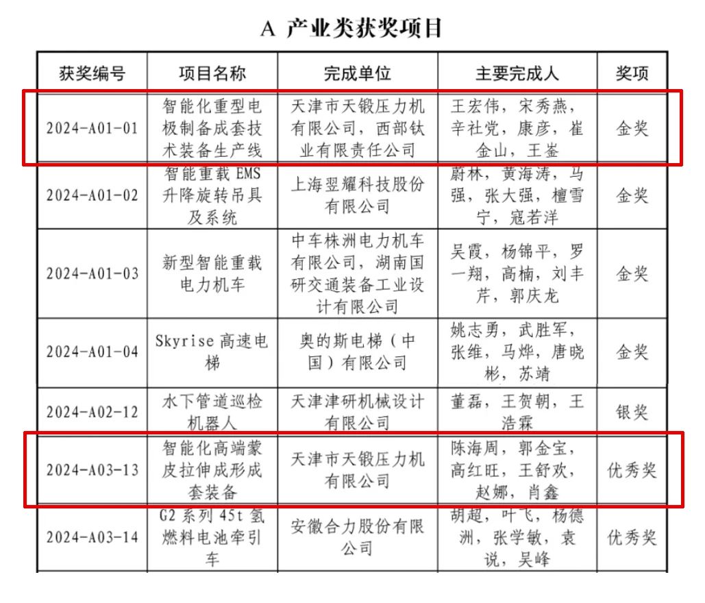 12月25日,“裝備中國(guó)”2024高端裝備創(chuàng)新設(shè)計(jì)大賽公布獲獎(jiǎng)項(xiàng)目。公司研發(fā)的“智能化重型電極制備成套技術(shù)裝備生產(chǎn)線”榮獲大賽金獎(jiǎng),“智能化高端蒙皮拉伸成形成套裝備”榮獲大賽優(yōu)秀獎(jiǎng)。
