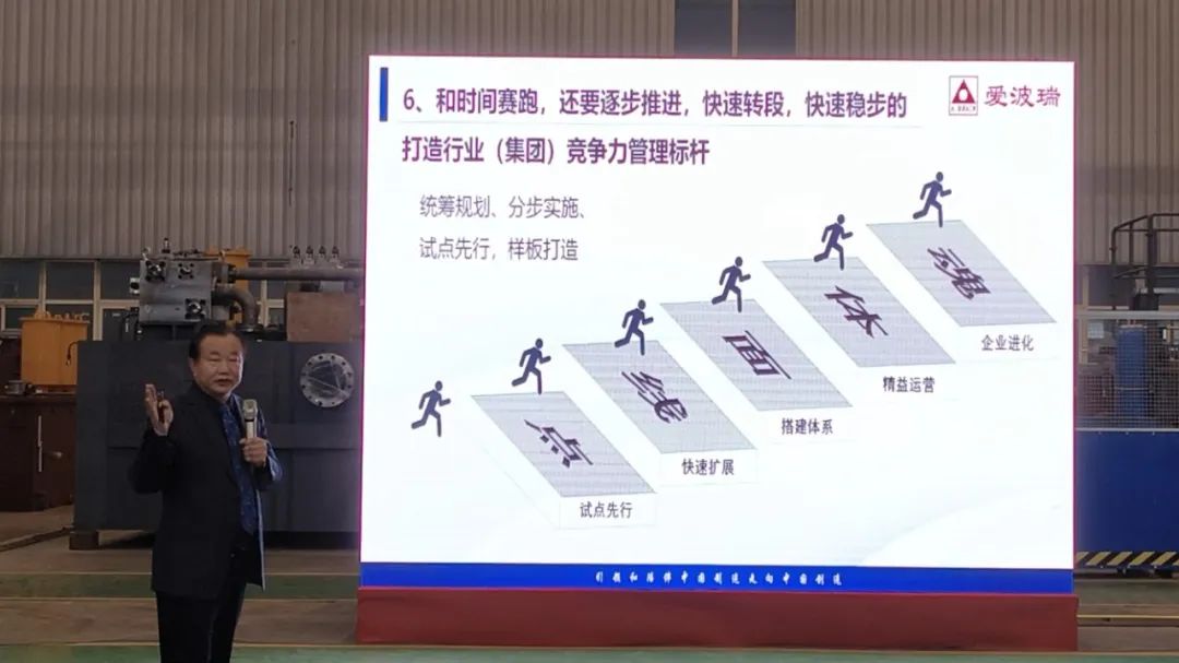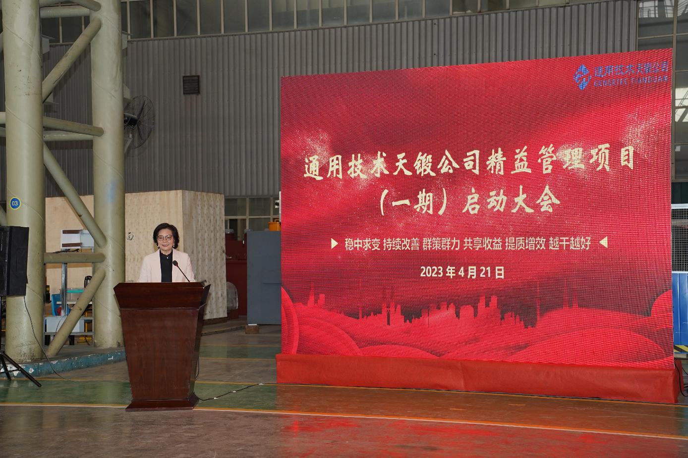 愛波瑞公司董事長王洪艷女士出席大會并致辭,同與會人員分享了自己多年從事精益管理咨詢工作的心得,指出精益管理是制造業(yè)高質(zhì)量發(fā)展的必由之路,也是天鍛公司創(chuàng)建世界一流專業(yè)領(lǐng)軍示范企業(yè)的必由之路。