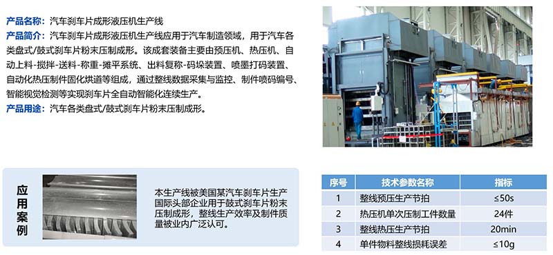 汽車剎車片成形液壓機(jī)生產(chǎn)線