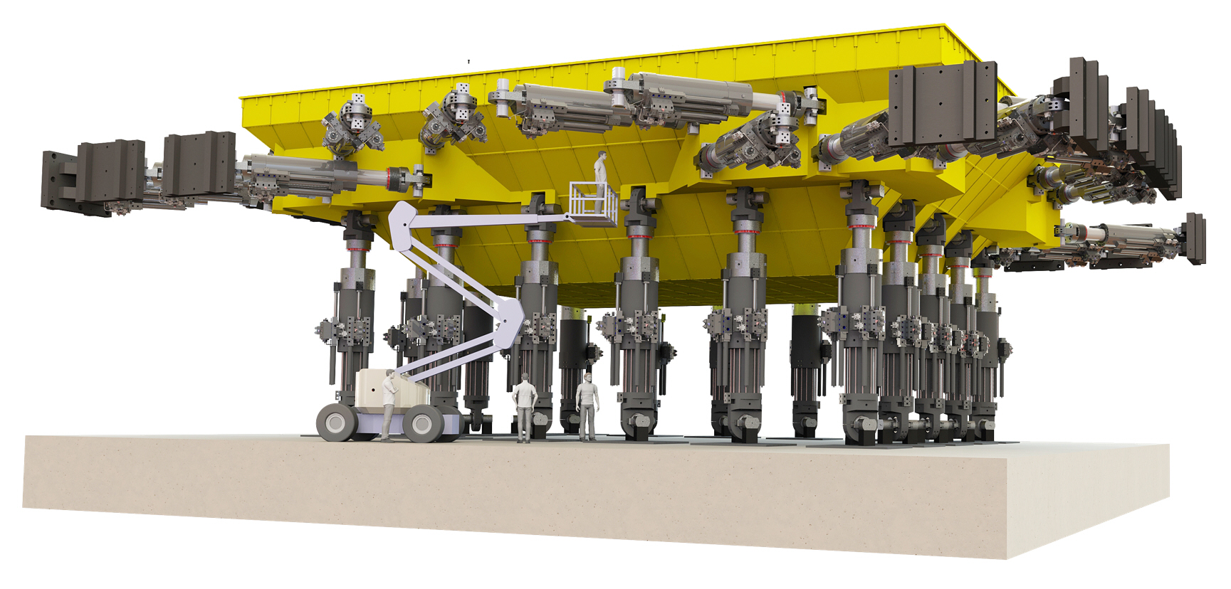 “國家大型地震工程模擬研究設施”是我國地震工程領域國家重大科技基礎設施,由天津大學牽頭,在天津建設。設施建成后,可大幅提升我國防災減災領域原始創(chuàng)新能力,對保障水利、土木、海洋、交通等重大工程的安全具有重要意義。其中,實驗中心的16m× 20m大型振動臺和6m × 6m 水下振動臺臺陣系統(tǒng),是整個試驗裝置中最核心部分。通用技術(shù)天鍛公司承擔全部振動臺臺體、液壓系統(tǒng)及輔助機構(gòu)的開發(fā)與制造,同時負責振動臺設備的安裝與聯(lián)合調(diào)試。